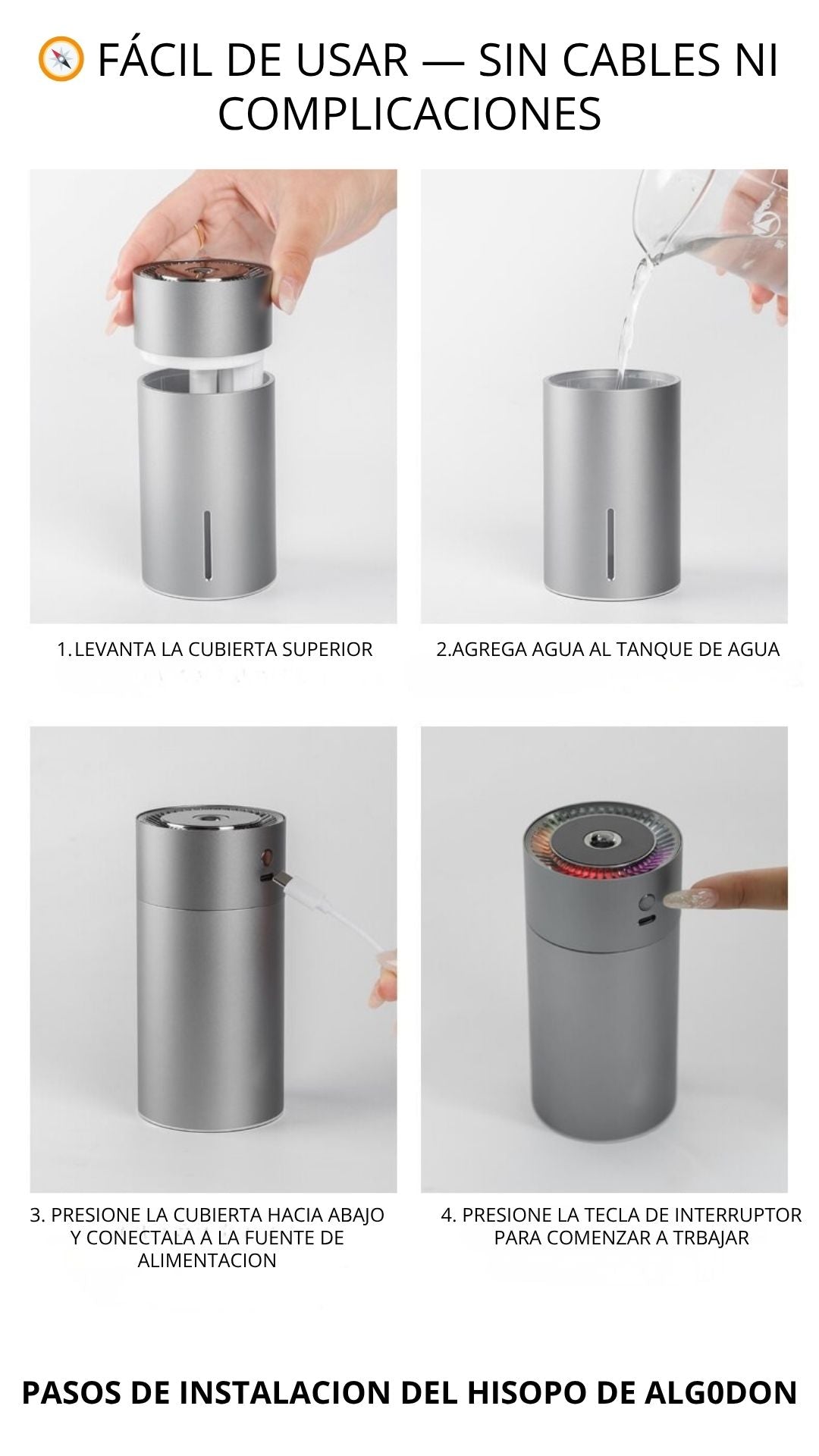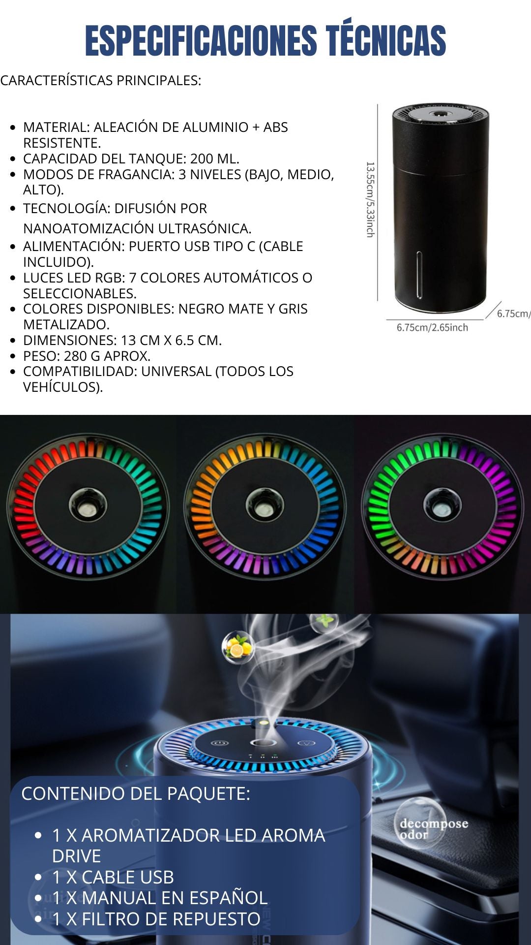 Sí: aromatizador, cable USB-C, manual y filtro. (solo tienes que agregarle agua y la esencia de tu preferencia )