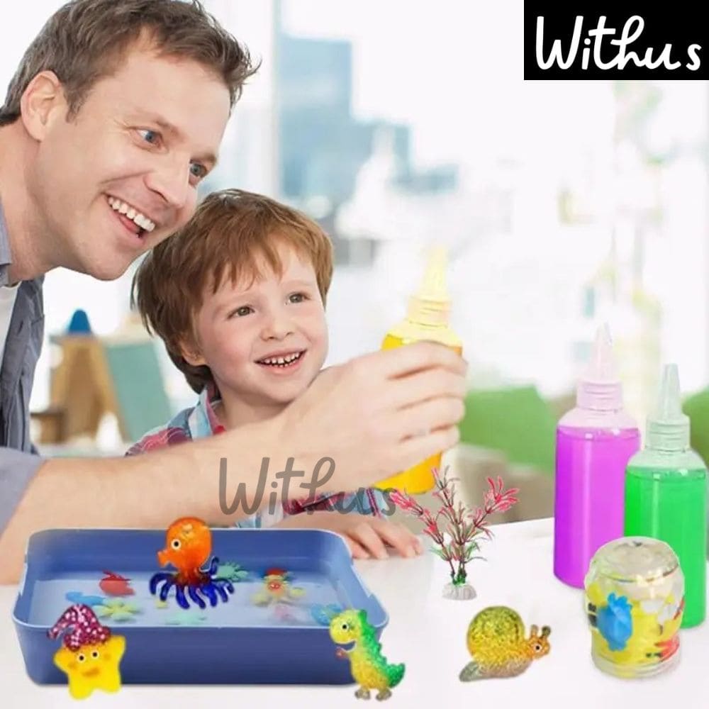 AquaLab Kids es un kit científico-creativo que permite a los niños crear hermosas figuras que cobran vida en el agua. Mediante un proceso seguro y fascinante, cada creación se convierte en una aventura de aprendizaje que combina ciencia, arte y diversión.