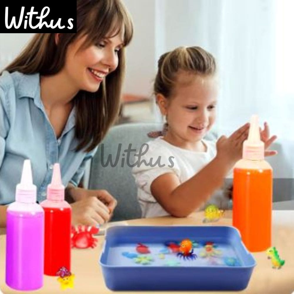 Sumerge tu creación en la solución y observa cómo cobra vida en el agua.